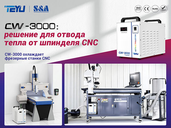 Чиллер для шпинделя TEYU CW-3000 для станков с ЧПУ мощностью 1–3 кВт.