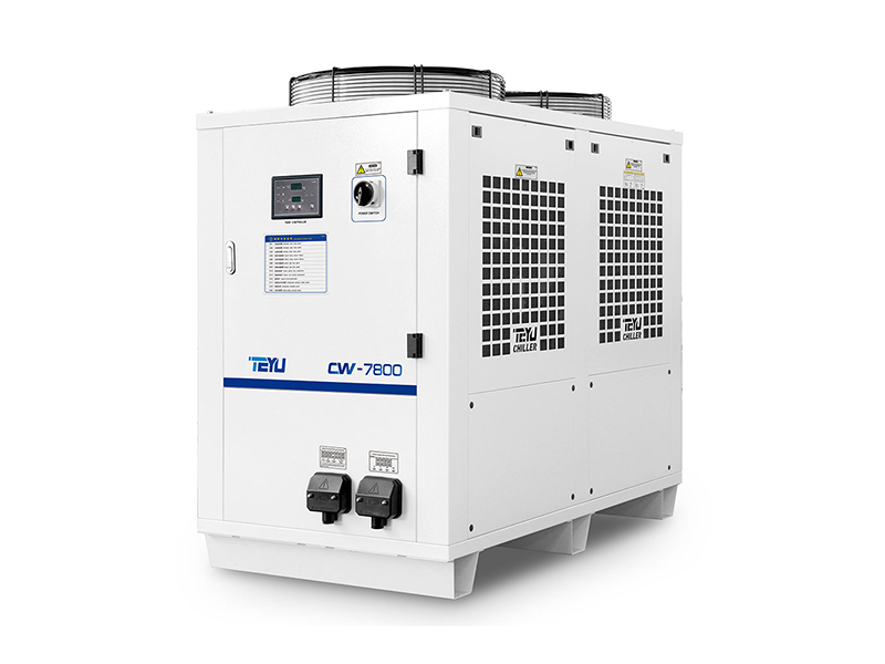 Мощный промышленный чиллер TEYU CW-7800 может удовлетворить высокие требования к охлаждению системы лазерной резки CO2 мощностью до 800 Вт. Охладитель воды CW-7800 предлагает холодопроизводительность до 26 кВт, температурную стабильность ± 1 ℃ и диапазон 5 ℃-35 ℃, а также максимальную температуру окружающей среды 45 ℃. Протокол связи Modbus-485 поддерживается для обеспечения связи между охладителем и лазерным станком.