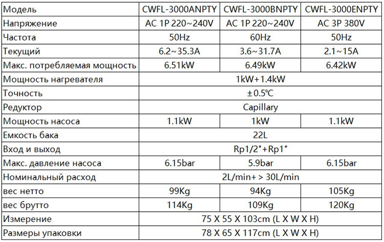 Охладитель оборотной воды TEYU CWFL-3000 изготовлен специально для станков с волоконным лазером мощностью 3 кВт. Благодаря двойному контуру регулирования температуры внутри чиллера CWFL-3000охладитель воды способен регулировать и поддерживать температуру двух частей - лазера и оптики. И контур охлаждения, и температура воды контролируются интеллектуальной цифровой панелью управления.