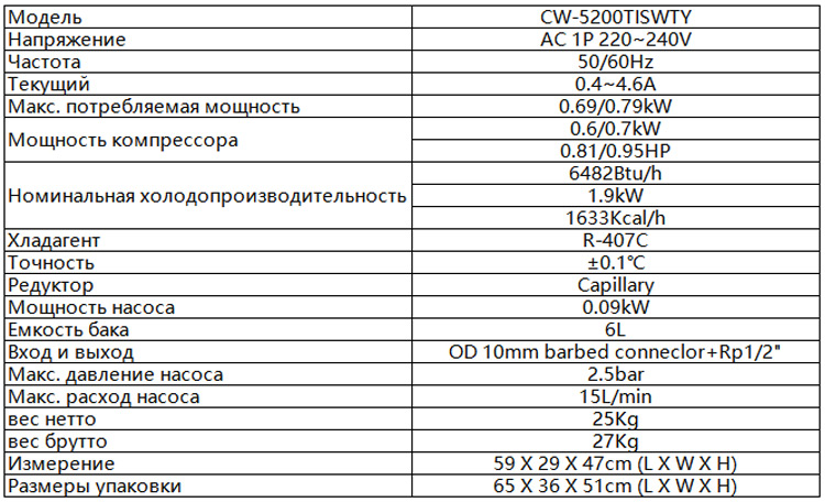 Охладитель водыCW-5200TISW оснащен цифровым дисплеем для контроля и управления температурой прибора в диапазоне 5-35°C. Коммуникационный порт RS485 обеспечивает связь с охлаждаемым оборудованием. Кроме того, индикатор уровня жидкости для максимальной безопасности операций. Охладитель воды CW-5200TISW имеет несколько встроенных сигнализаций, 2-летнюю гарантию, стабильную работу, низкий уровень шума и длительный срок службы.