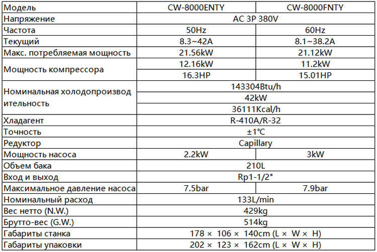 Промышленный чиллер большой холодопроизводительности CW-8000 обеспечивает точный контроль температуры в аналитических, промышленных, медицинских и лабораторных приложениях. Он охлаждается в диапазоне температур от 5°C до 35°C и обеспечивает стабильность ±1°C, обеспечивая при этом большую охлаждающую способность 42000 Вт. Благодаря прочной конструкции чиллер CW-8000 с воздушным охлаждением обеспечивает непрерывную и надежную работу. Цифровая панель управления легко читается и обеспечивает несколько функций сигнализации и безопасности.