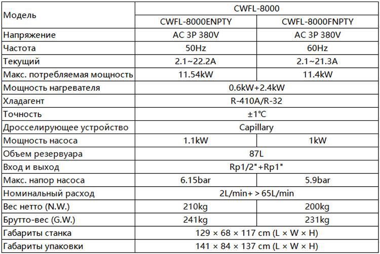 Резервуар для водыпромышленный чиллер для лазерной обработки CWFL-8000 изготовлен из нержавеющей стали и имеет емкость 100 л, а конденсатор с воздушным охлаждением отличается превосходной энергоэффективностью. Чиллер CWFL-8000 с напряжением 380 В, 50 Гц или 60 Гц работает по протоколу Modbus-485, обеспечивая более высокий уровень связи между чиллером и лазерной системой. Разнообразные встроенные устройства сигнализации для дополнительной защиты чиллера и лазерного оборудования, что делает работу более безопасной и снижает потери, вызванные неправильной эксплуатацией.