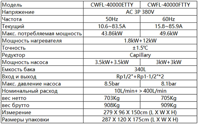 Волоконный лазерный чиллерCWFL-40000 имеет интерфейс RS-485 для связи с мощными волоконными лазерами. Интеллектуальный контроллер температуры устанавливается с передовым программным обеспечением для оптимизации производительности чиллера. Разнообразные встроенные сигнальные устройства для дополнительной защиты чиллера и лазерного оборудования. В соответствии с одобрением CE, RoHS и REACH. Настройка доступна.