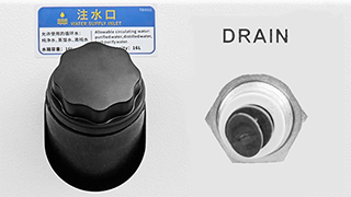 * Фронтальное отверстие для заливки воды и сливное отверстие