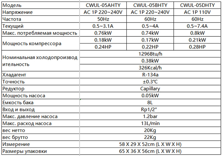 * Хладагент: R-134a.