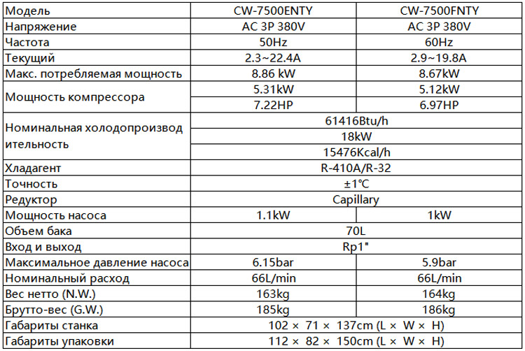 Охладитель воды TEYU CW-7500 изготовлен для обеспечения многолетнего надежного активного охлаждения шпинделя с ЧПУ мощностью 100 кВт. Это промышленное охлаждающее оборудование поддерживает заданную температуру в диапазоне от 5℃ до 35℃ с высокой точностью. Он включает в себя эффективный водяной насос и компрессор, что позволяет экономить значительную энергию. В сочетании с Modbus-485 для простого подключения чиллера к станку с ЧПУ.