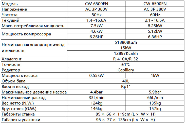 Охладитель шпинделя с ЧПУ CW-6500 предпочтительнее воздушной или масляной системы охлаждения, когда шпиндель мощностью от 80 до 100 кВт должен работать в течение длительного периода времени. Когда шпиндель работает, он имеет тенденцию выделять тепло, и этот охладитель является эффективным и экономичным способом охлаждения шпинделя с помощью циркуляции воды. Охладитель воды CW-6500 сочетает в себе долговечность и простоту обслуживания. Разборка бокового пылезащитного фильтра для периодической очистки осуществляется за счет блокировки системы крепления. Все компоненты смонтированы и подключены надлежащим образом, чтобы гарантировать надежную работу чиллера. В качестве хладагента используется R-410A, безвредный для окружающей среды.