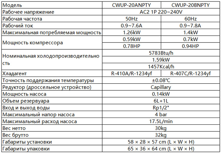 Водоохладитель CWUP-20ANP сохраняет за собой TEYU S&A Основные технологии и минималистский стиль компании, а также дополнительные элементы дизайна, обеспечивающие безупречное сочетание функциональности и эстетики. Он оснащен охлаждающей способностью до 1590 Вт, тщательной проверкой уровня воды и множеством защитных сигналов. Четыре ролика обеспечивают легкую мобильность и непревзойденную гибкость. Высокая надежность, энергоэффективность и долговечность делают его идеальным охлаждающее решение для пикосекундного и фемтосекундного лазерного оборудования.