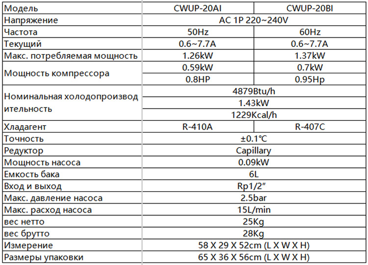 CWUP-20 - активное охлаждениепортативный охладитель воды который оптимизирует работу вашего сверхбыстрого лазера и УФ-лазерной системы. Этотнебольшой охладитель воды обеспечивает особенно высокую степень температурной стабильности ±0,1°C. Температура воды контролируется ПИД-регулятором, а чиллер оснащен несколькими встроенными функциями сигнализации. Еще одним важным моментом является то, что чиллер CWUP-20 поддерживает связь RS485 с лазерной системой. Порт для удобного заполнения установлен сверху, а 4 ролика обеспечивают удобство передвижения.