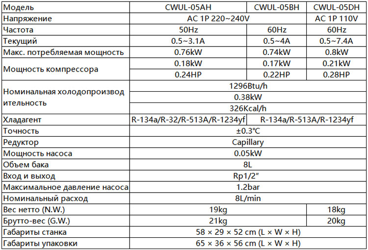 * Хладагент: R-134a/R-32/R-1234yf/R-513A