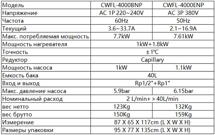 Промышленная холодильная система CWFL-4000 предназначен для поддержания максимальной производительности сварочного аппарата с волоконным лазером мощностью до 4 кВт за счет высокоэффективного охлаждения волоконного лазера и оптики. Вы можете задаться вопросом, как ОДИН чиллер может охлаждать ДВЕ разные детали. Ну, это потому, что этот чиллер с волоконным лазером имеет двухканальную конструкцию. В нем используются компоненты, соответствующие стандартам CE, RoHS и REACH, и предоставляется 2-летняя гарантия. Благодаря встроенной сигнализации этот лазерный охладитель воды может защитить ваш сварочный аппарат с волоконным лазером в течение длительного времени. Он даже поддерживает протокол связи Modbus-485, так что связь с лазерной системой становится реальностью.