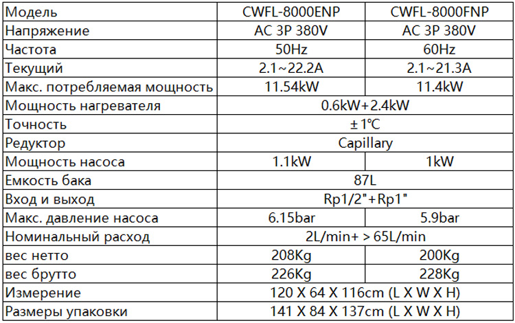 Промышленная система водяного охлаждения CWFL-8000 часто используется для снижения тепла, выделяемого волоконным лазером мощностью до 8 кВт. Благодаря двойной схеме контроля температуры, как волоконный лазер, так и оптика могут прекрасно охлаждаться. В контуре хладагента используется технология перепуска электромагнитного клапана, позволяющая избежать частых пусков и остановок компрессора и продлить срок его службы. Резервуар для воды изготовлен из нержавеющей стали и имеет емкость 100 л, а конденсатор с воздушным охлаждением обеспечивает превосходную энергоэффективность. Оптоволоконный лазерный чиллер CWFL-8000, доступный с напряжением 380 В, 50 Гц или 60 Гц, работает по протоколу Modbus-485, обеспечивая более высокий уровень связи между чиллером и лазерной системой.